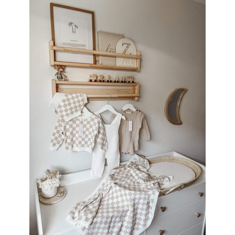 Get your little one all wrapped for cozy naps with our Checkered Jacquard Blanket. Designed with classysoft, luxurious, organic cotton, it matches perfectly with our Checkered Jacquard Pullover and Checkered Jacquard Bloomers. Finished with a delicate rib