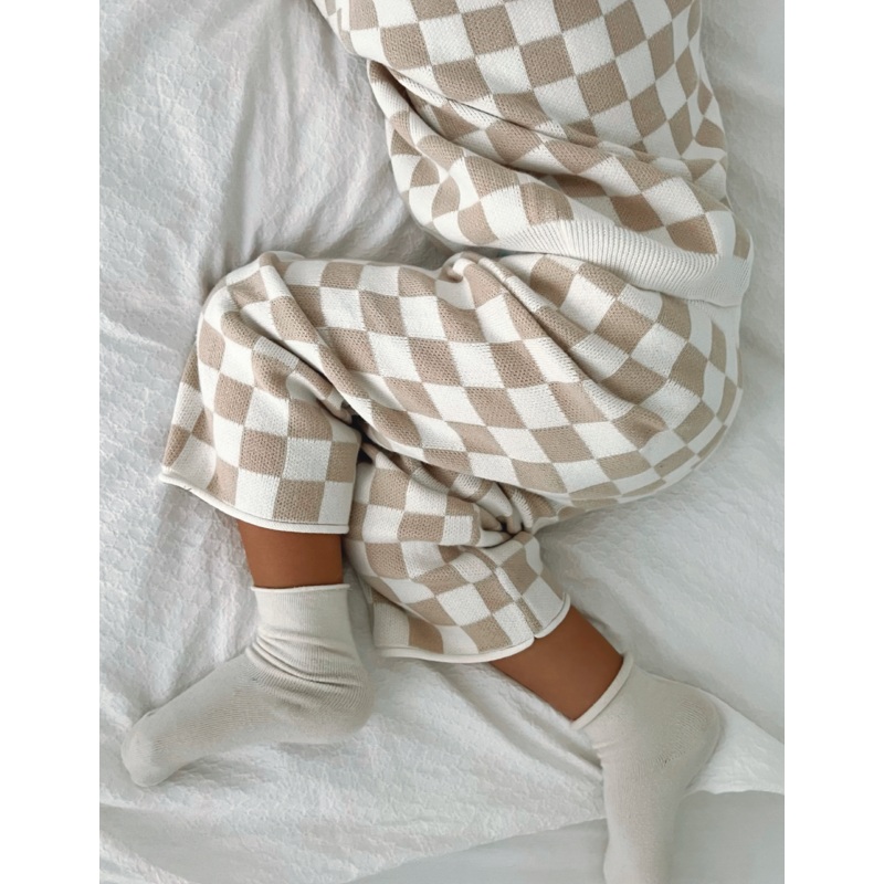 These stylish and sophisticated little Checkered JacquardPants are perfection. Designed with total comfort and cuddles in mind, you can match them with our Checkered Jacquard Pullover.100% Organic CottonElastic waistband with functional tie.Matches with ou