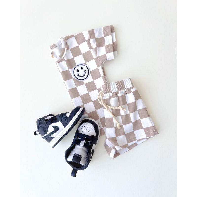 Our most popular checkered smiley sets are back with an upgrade!These gender neutral two-piece shorts sets are perfect for all your playtime fun! Made of high quality, oh-so-soft cotton and a perfect amount of stretch. Playtime has never looked so good!95%