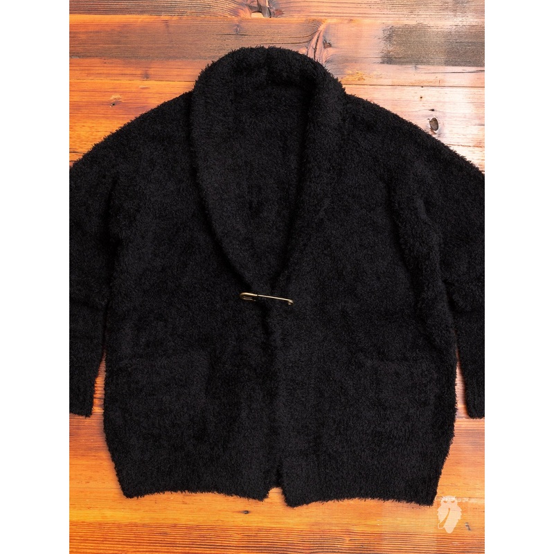 • This cozy cardigan from Attachment makes use of a chenille knit process where yarn tufts are woven into the fabric to create a fluffy surface. Built from genuine wool, the cardigan is both extremely hefty and soft, creating a comfortable and warm seasonal garment. Cut in Kazuyuki Kumagai’s signature relaxed style, and equipped with an oversized custom-made brass pin in lieu of buttons or zippers.