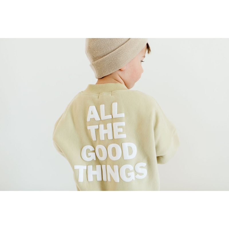 Our "All the Good Things" sweat set is perfect for your little one! Crafted from premium materials, this sweat set is soft, stylish, and oh-so-comfortable. With its muted avocado green background and puff letters, its sure to be a favorite for your child.