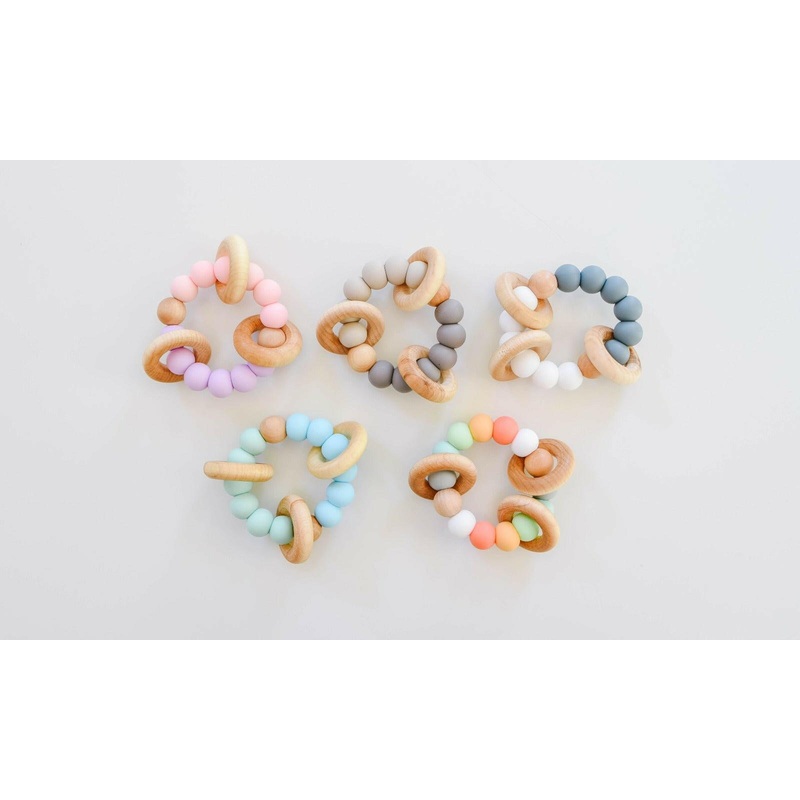 If you love our classic rattles, you will love our Classic Teethers! Made from silicone and wood beads, with wooden rings that make the sweetest sounding rattle this toy is sure to be the perfect gift for a new baby. With its’ light weight, young babes will be able to hold it!