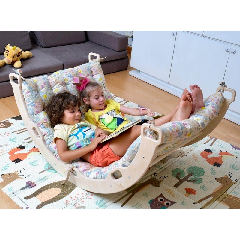 Introducing ourArch – Rocker with Pillow Spring Pattern, a premium Montessori Climbing Set designed to support your child’s growth. This set includes a climbing arch/rocker and a stylish, plush pillow with a spring pattern from 100% natural cotton fabric. Its perfect for Montessori learning and provides comfort and excitement during play.