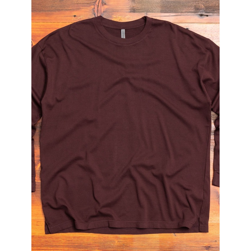 Cotton Jersey Relaxed Long Sleeve T-Shirt in Burgundy