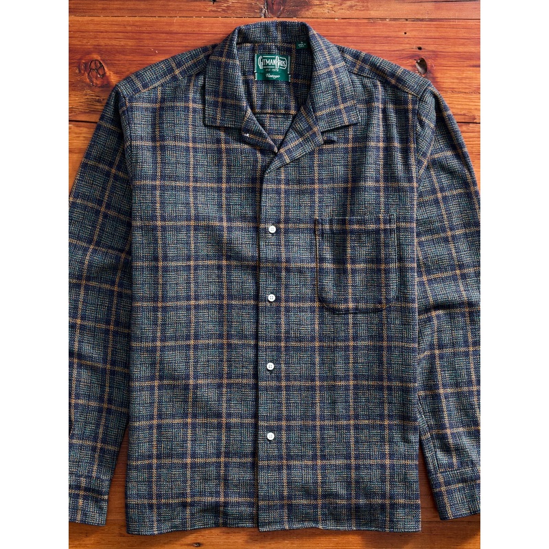 • This button-up shirt from Gitman Vintage is made in the USA from a soft brushedtweed fabric. The shirt sports a textured, warm appearance with the depth and character typical of the brand’s signature shirting. The camp shirt style features a relaxed fit, open collar, and straight hem cut designed for a more casual look.