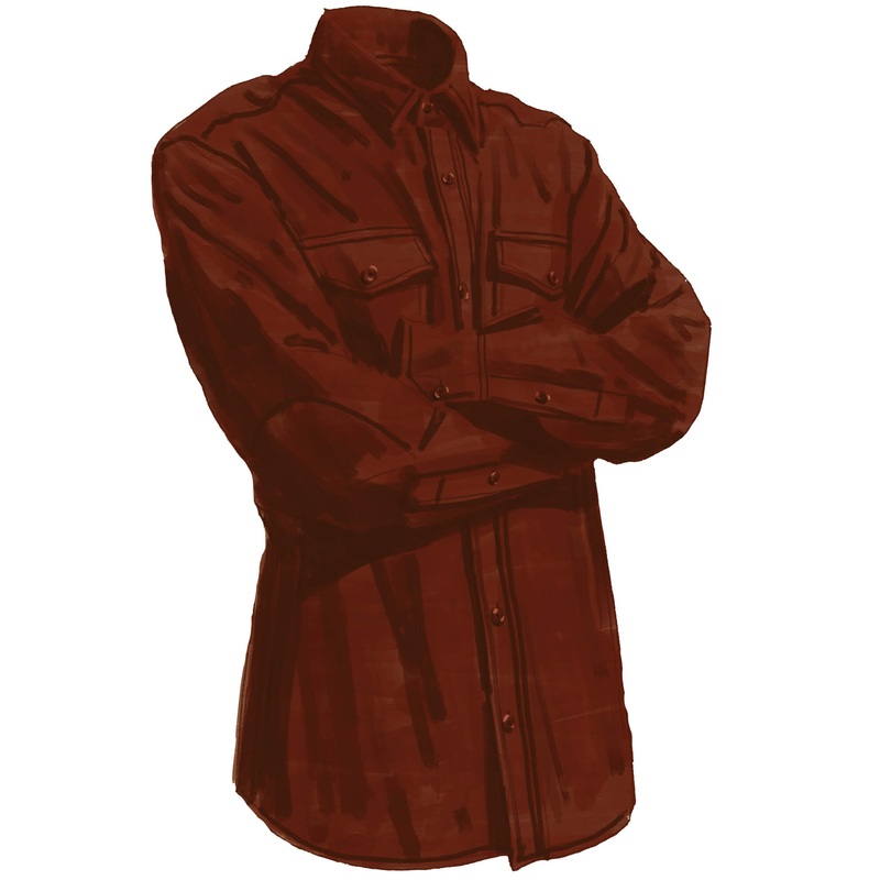 Country Moleskin Shirt (No. 5859). Dont let the durable, warm, and wind-resistant moleskin fool you; this shirt is pretty smart. From our mill in Italy. 380-gram weight. Surprisingly luxurious with a tie. Dyed-to-match corozo buttons in front. Modified elbow patch extends to the adjustable sleeve cuff. Flat felled seams. Patch pockets at chest with flap and button closure. Back yoke with box pleat below. Made in Portugal.