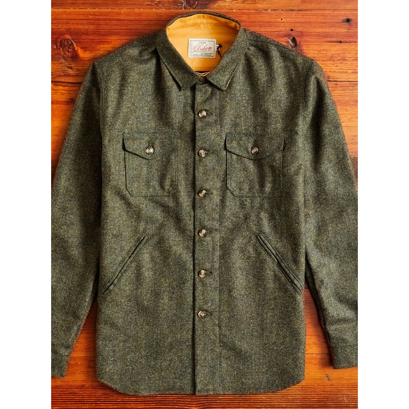• The Crissman from Dehen 1920 is the brand’s heavy dutyovershirt made entirelyat the brand’s Portland, Oregon knitting factory. Built usinga custom-wovensuiting fabric, theshirt sports alightweight weavewith a flexible and soft finish. Cut in an oversized shirt-jacket fit, the Crissman Overshirt features a roomy body designed to be worn as a true outerwear piece.Fitted with large chest pockets, double welt hand pockets, reinforced elbows, and cotton lined interior accents.