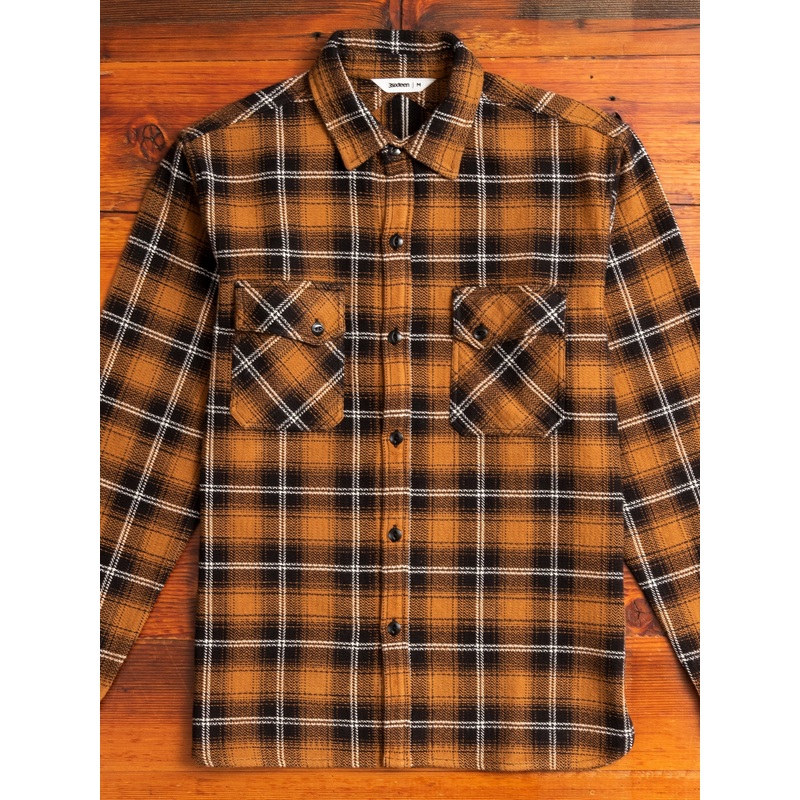 • 3sixteeen’s crosscut flannel is the brand’soriginal button-up shirt featuring custom woven fabrics and signature cross-stitched yoke at the back. Wovenwith thick gauge cotton yarn, this iteration features a custom weave cotton flannel fabric with aheavytexture and soft double-brushed interior. Cut in a regular fit with asymmetrical flap pockets and black fisheye metal buttons .