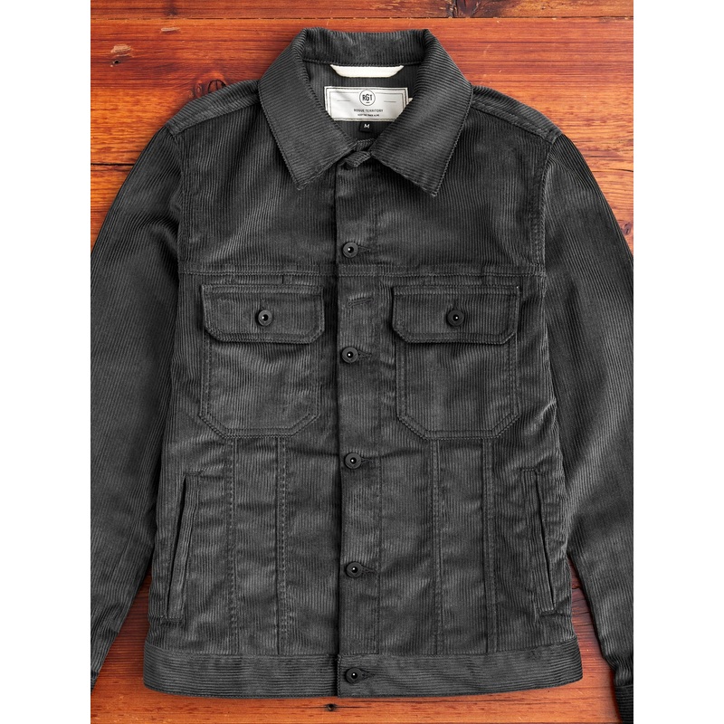 DetailsSizingBrand InfoRogue Territory's Cruiser Jacket is an original design drawing from classic trucker jacket silhouettes. This installment is crafted using a 9oz corduroy fabric from Japan with a charcoal grey finish. Cut and sewn in Los Angeles, the