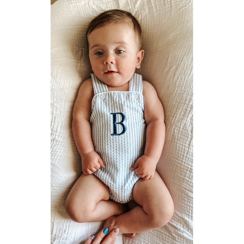 Fully lined in 100% cotton. Elastic in leg opening. Snaps at crotch, buttons at shoulder straps.