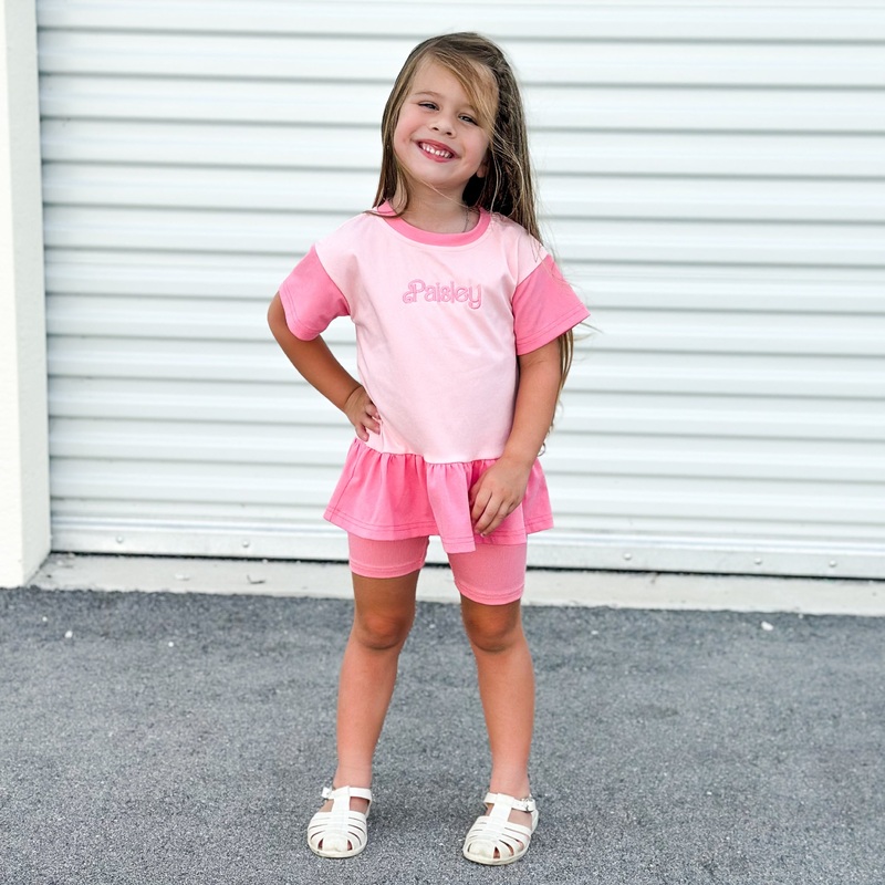Be the first to review “Custom Embroidered Colorblock Peplum Tee and Biker Shorts Set”