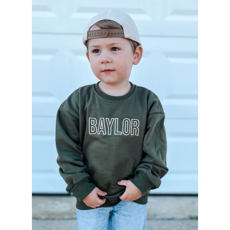 Custom embroidered crewneck sweatshirt or sweatshirt romper. Lightweight French terry material, 83% cotton/17% polyester