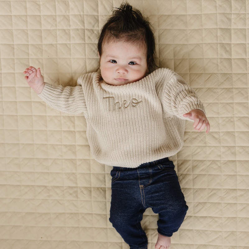 Make your little one’s holiday season even more special with ourEasterOversized Chunky Knit Sweater, personalized just for them! This cozy, cotton knit sweater brings both festive charm and trendy style, perfect for holiday gatherings and photos. Featuring chunky knit texture, it’s designed to keep your baby or toddler snug and stylish all season long.