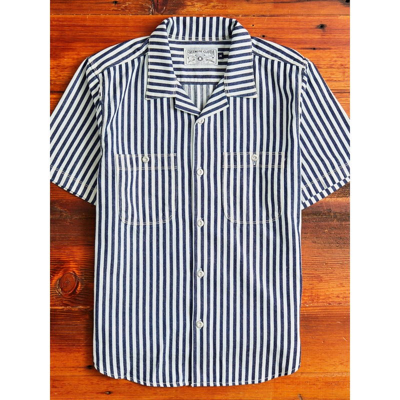 DetailsSizingBrand InfoThe Dayton Work Shirt from Freenote is sewn using an lightweight Japaneseindigo stripe fabric. The shirt is fitted withan open camp collar and two oversized utility pockets at the chest large enough to store a variety of tools or gad