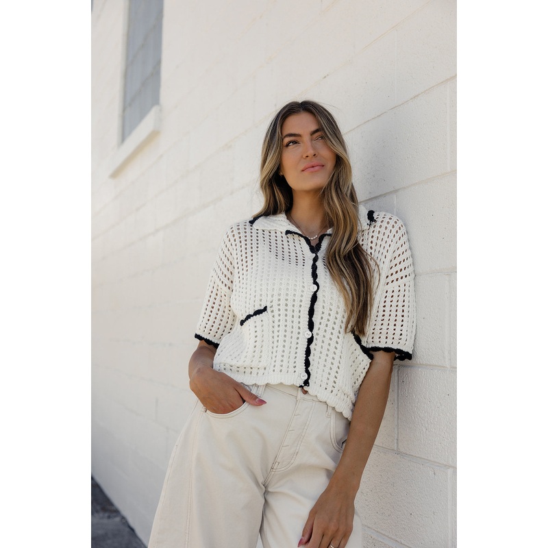 “Who else decodes you?” This cutie boasts a soft, airy knit that’s perfect for breezy days. Adorned with sweet scalloped hemlines, a charming collar, and handy front patch pockets, it’s a blend of cozy and chic. Button up and feel lovely!