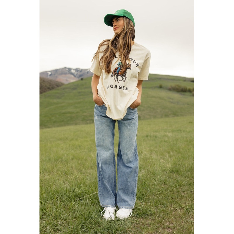 // paired with the vintage goods foam trucker hat + hold your horses graphic tee
