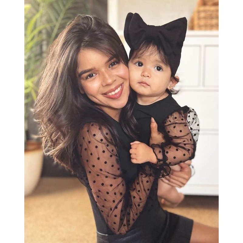 Step into chic synchronicity with our mommy and me Destinee Sheer Dot Sleeve Top & Leotard in classic Black! A sensational duo that shouts sophistiqu while keeping things marvelously playful! Perfect for creating those picture-perfect mommy-and-me moments,