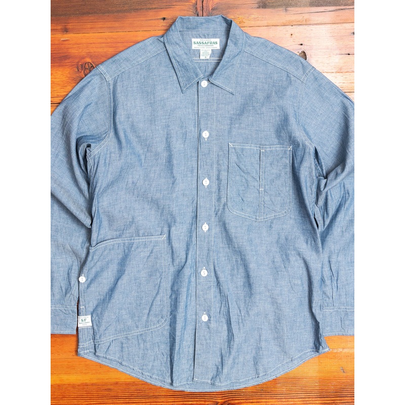 DetailsSizingBrand InfoCrafted from a 5oz Japanese chambray fabric, the Diggin Halfshirt is a workwear inspired chambray button-down, cut in a relaxed fit with an asymmetrical pocket design.Woven with a fine texture, theshirt is lightweight yet durable, an