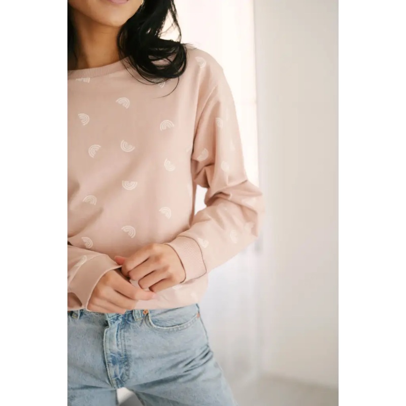 Sustainably printed on our organic cotton pullovers, the ditsy rainbow pullover is lightweight, fun and flexible. Shop matching sizes for kiddos, too!