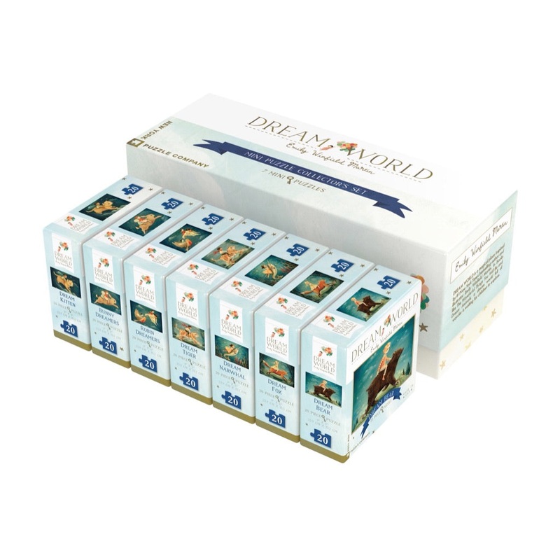 Delight young imaginations with the Dream World Mini Puzzle Collectors Set, a beautifully packaged collection of seven enchanting mini puzzles inspired by Emily Winfield Martins beloved book Dream Animals. Each 20-piece puzzle brings to life the whimsical