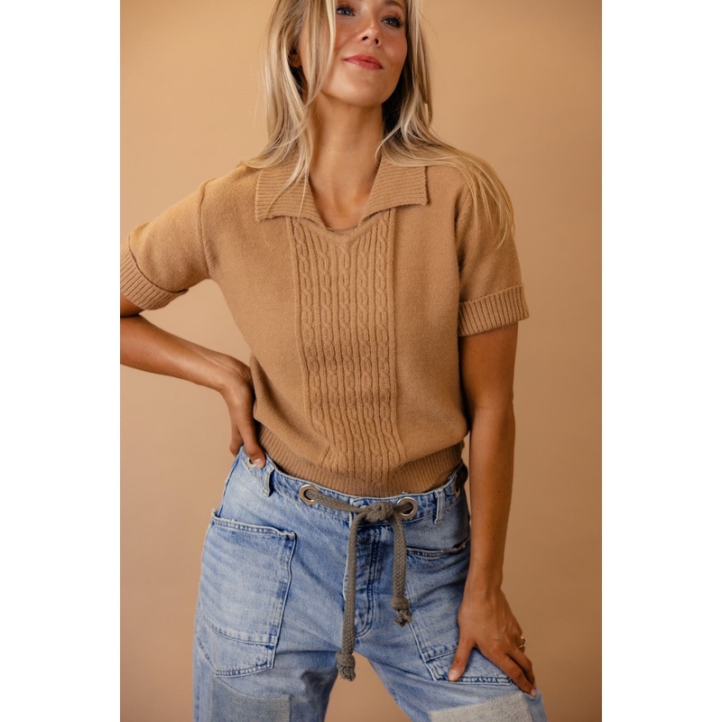 The Edwards Cable Knit Sweater is a mix of our two favorite things! It features short sleeves, a fun collar, and cable knit details. It's the perfect fall piece for when it's cold in the morning and warm in the afternoon. If you know you know!Knit material