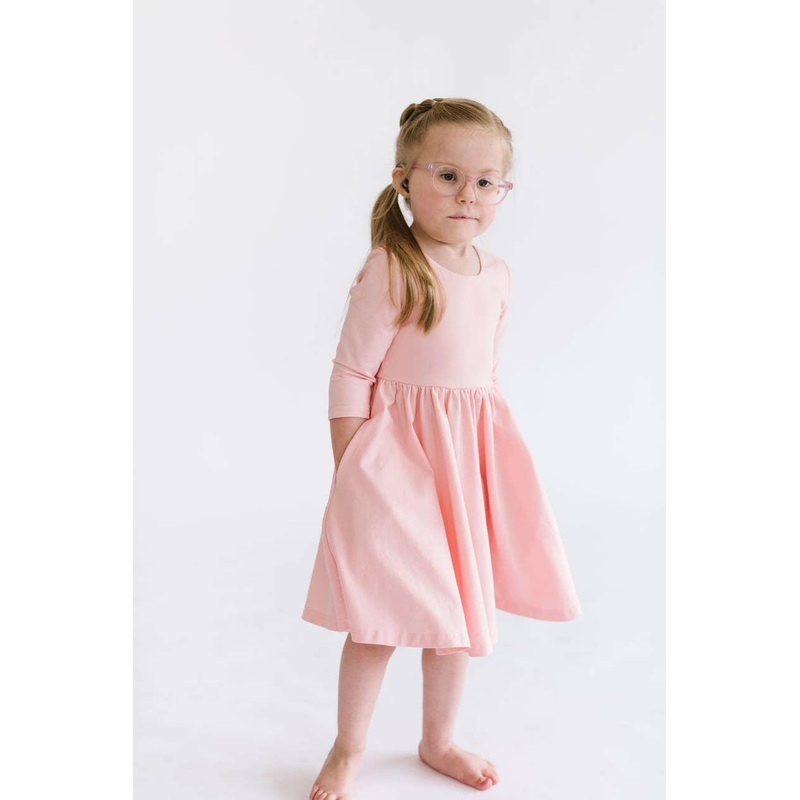 A classic ballet inspired twirl dress in our signature extra soft and stretchy fabric with side seam pockets, double lined bodice, scoop back, 3/4 sleeves and a full circle skirt for maximum twirls!95% Cotton 5% SpandexWash cold with like colorsHang or lay