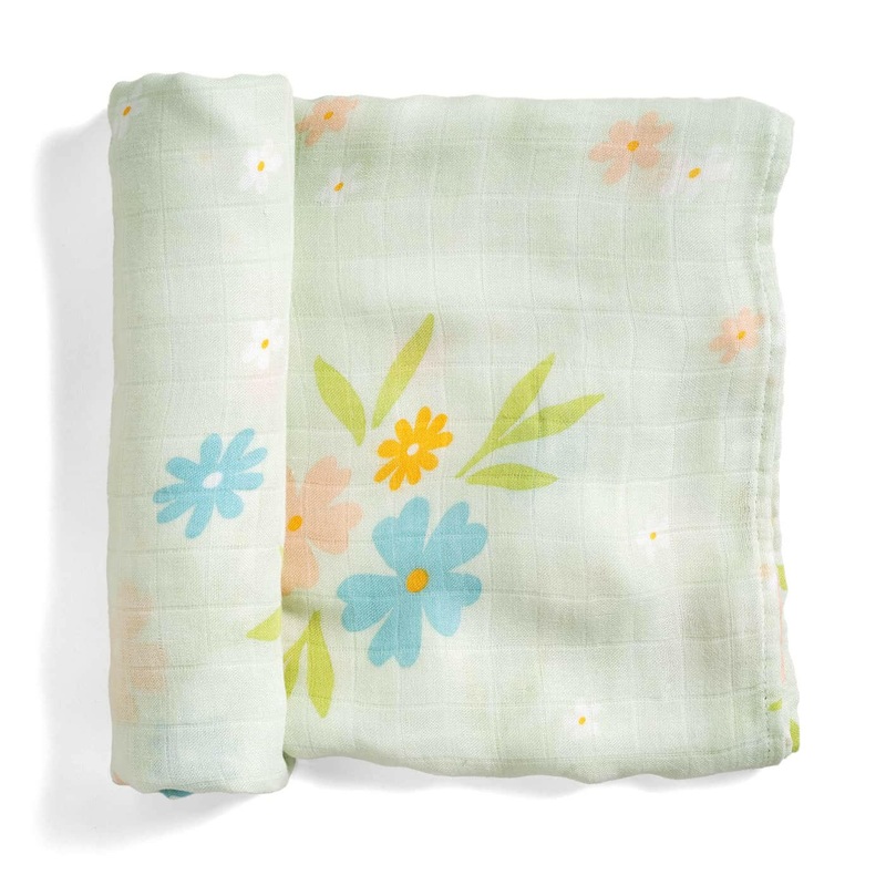 OurEnchanted Meadow floral swaddle coordinates with the Enchanted Meadow crib sheet, available in US Standard size, and Mini Crib size.