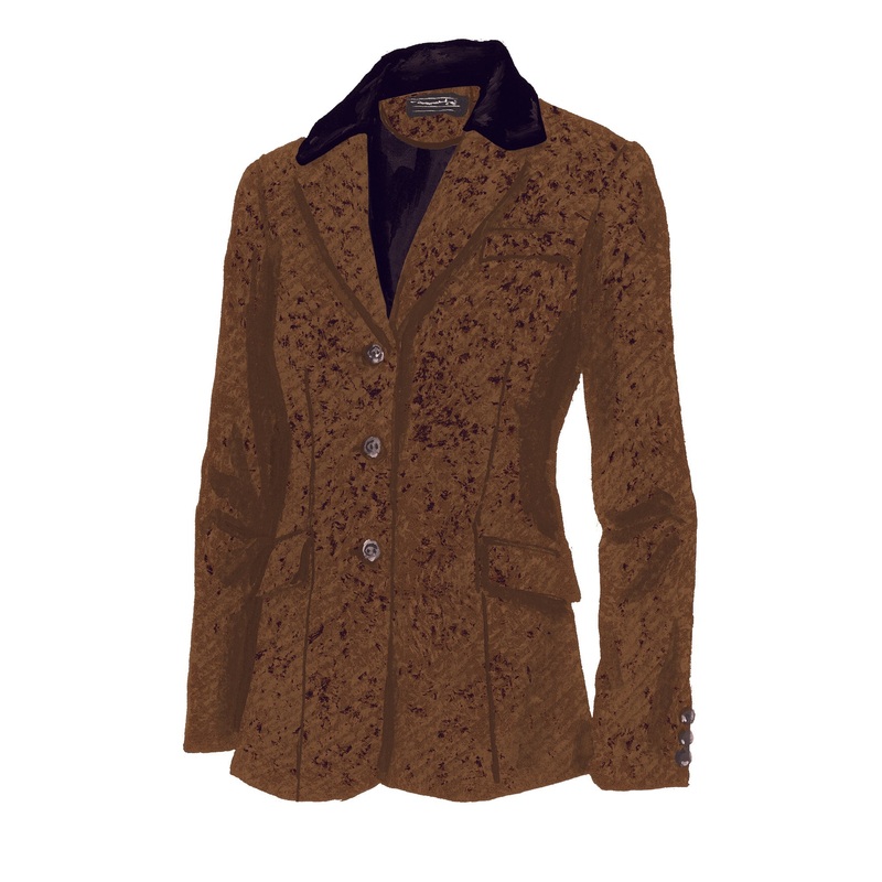 English Hacking Jacket (No. J1931) with angled hacking pockets. Center back vent. Button velvet collar and functional button cuffs. Rich brown collar and lining. Made of pure-wool tweed, itself a work of art. Fully lined. Imported.