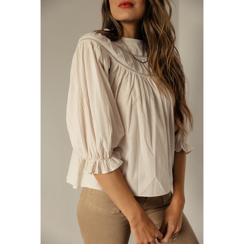 Looking for an elevated blouse you can wear to the office and the park? The Esther Blouse features lace detailing and ruffled sleeves. You can pair this pretty blouse with jeans, pants, and skirts. The Esther is the perfect addition to your wardrobe.slight