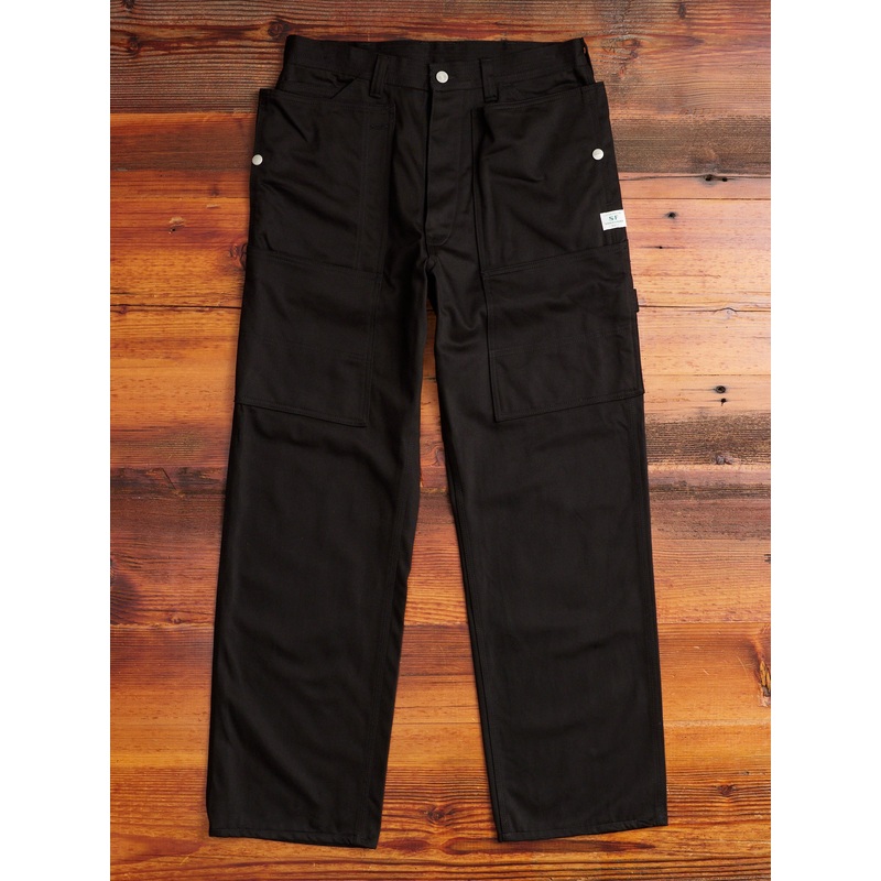• The Fall Leaf Tough Pants from Sassafras are inspired bycarpenter style pants and designed for multipurpose living. Crafted in Japan using aheavywork satin fabric, the pants come fitted with a total of 12 pockets designed for storing an assortment of everyday essentials and tools. The pants are cut in a loose tapered silhouette based on military baker trousers, and are constructed using vintage double needle stitching with bartackreinforcingthroughout.
