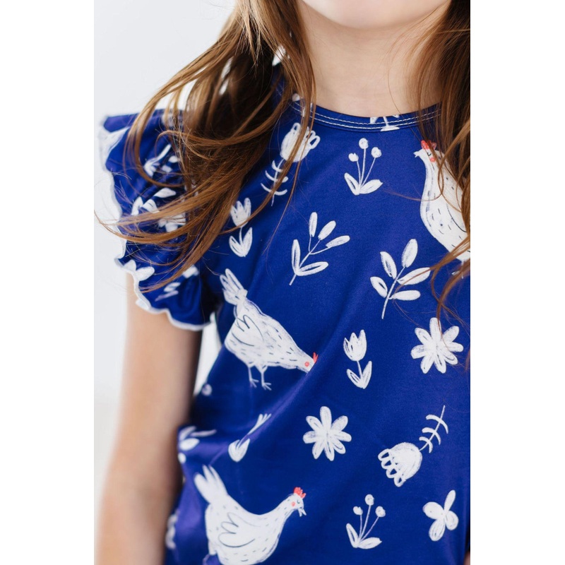 Our founders created the ruffle tee when they could not find the perfect basic tee for Mila. They wanted something simple but still girly. Our ruffle tee is perfect with skirts, shorts, leggings, or layering under pinafores.