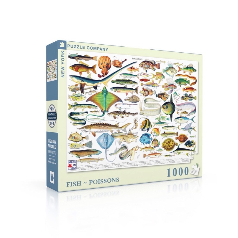 Fish ~ Poissons - Illustration by Adolphe Philippe Milot 1000 Piece Jigsaw Puzzle Made in the USA Recommended Age: 13+ YearsIllustration by Adolphe Philippe Milot1000 Piece Jigsaw PuzzleFinished Puzzle Size: 26.625"x19.25"Linen Style Finish to reduce glare