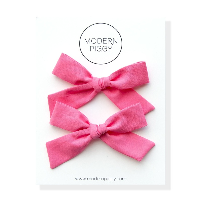 Pigtail Set - Set of two hand-tied bows for pigtails. Save 10% when buying in a set!A sweet and simple hand-tied bow made out of a high-quality, cotton fabric.Each bow measures approximately 3.5" x 1.5 and is handmade with love.1) Alligator clip - Best opt