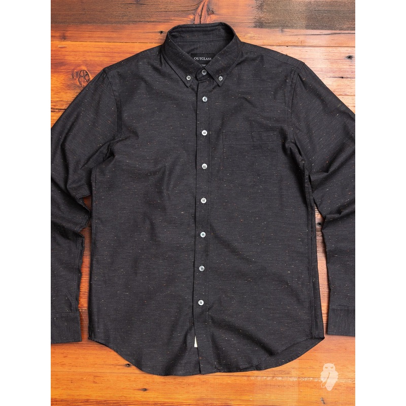 DetailsSizingBrand InfoThis button-down shirt from Outclass is made from a soft Spanish cotton fabric. The shirt features a subtle flecked texture with contrasting red and white neps found throughout. Finished with smoke grey mother of pearl buttons and cu