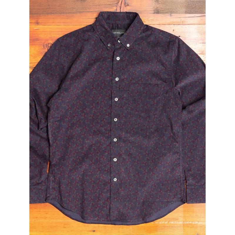 DetailsSizingBrand InfoThis button-down shirt from Outclass is made from an organic cotton corduroy with a muted navy floral motif. Cut in a tailored fit, the shirt issewn with grey mother of pearl buttons, a classic button-down placket, and double needle-