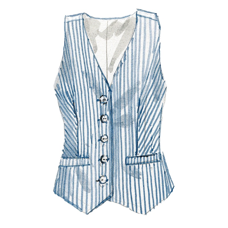 Florentine Seersucker Vest (No. J8251). Crisp cotton seersucker with shaping darts. Two pockets at front. Lined in cool 100% cotton. Imported.