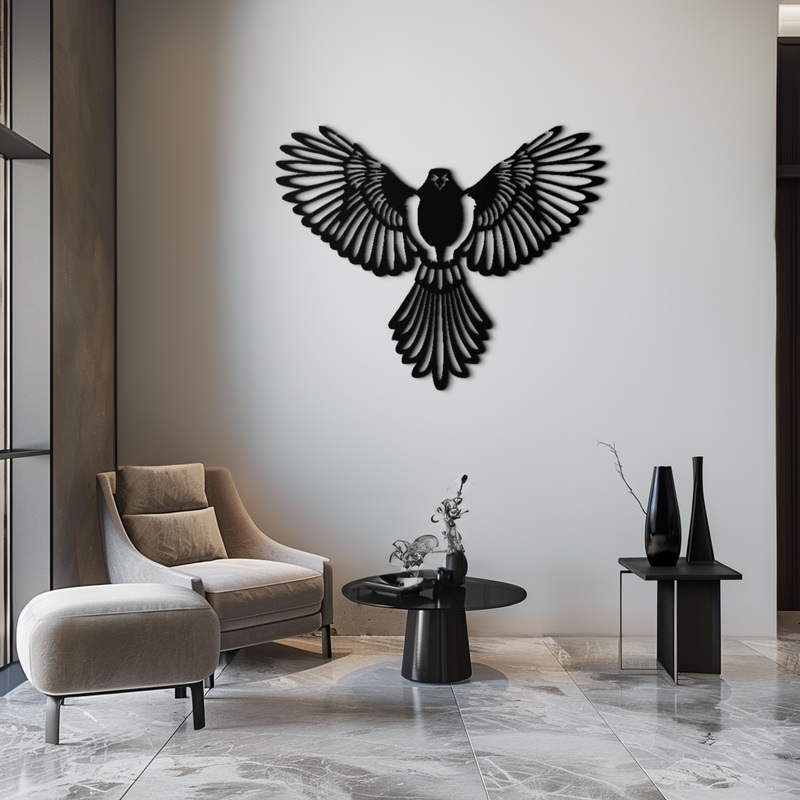 Bring the elegance of nature into your home or office! This flying bird metal wall art features a sleek and minimalist design symbolizing freedom and aesthetics. Crafted from high-quality 1.5 mm steel, it is coated with an electrostatic paint finish, ensur