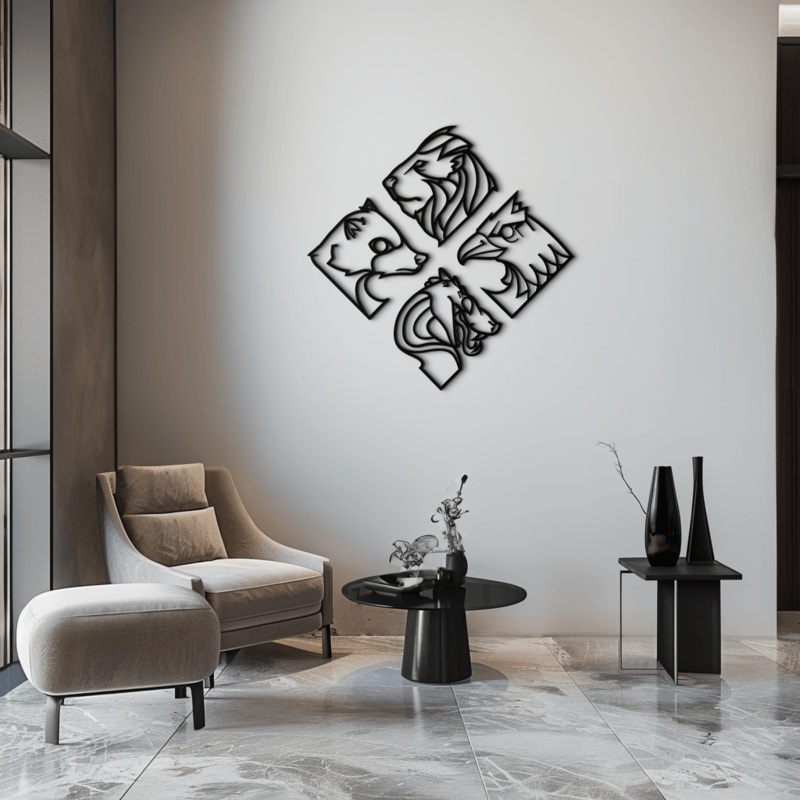 Bring strength, wisdom, and courage into your space with this Four Animal Totem Metal Wall Art, crafted from 1.5 millimeter premium steel and electrostatically painted for a durable, rust-resistant finish. Featuring an artistic representation of a lion, ea