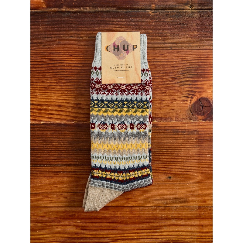 • Crafted by the textile house Glen-Clyde Inc., CHUP socks have become a workwear icon since their debut in 2009. Famous for their incredible durability and colorful patterns, each sock is expertly handmade in Japan and designed with the utmost attention to detail.
