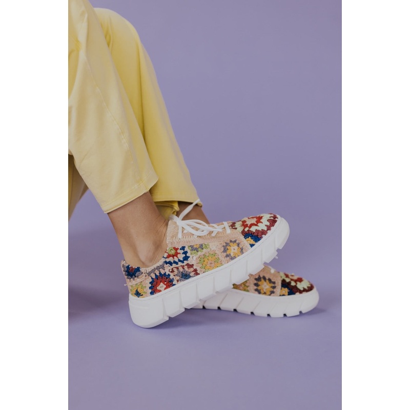 These sneakers are what every boho-loving gal dreams of! With their bohemian-inspired and unique look, these effortlessly cool sneakers feature a lace-up style, low-top silhouette, hand-crocheted woven details, and chunky lug sole. Perfect for wearing seas