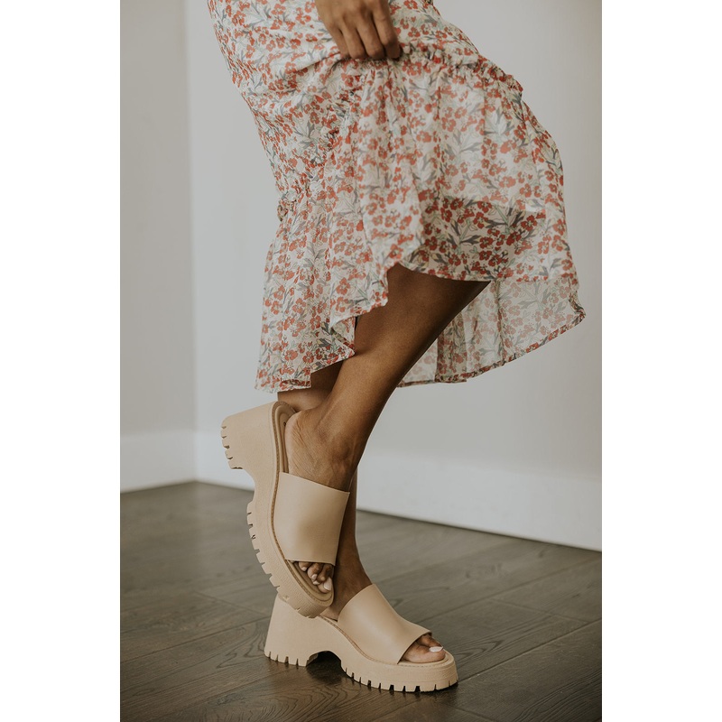 Slip into these + you'll never think about slipping on any other slip ons. Whoa, that was a lot. Open toe style to let those dogs out + enjoy the sun as much as anyone else. Chunky silhouette because why we let that style die for a bit I'll never know. Sof