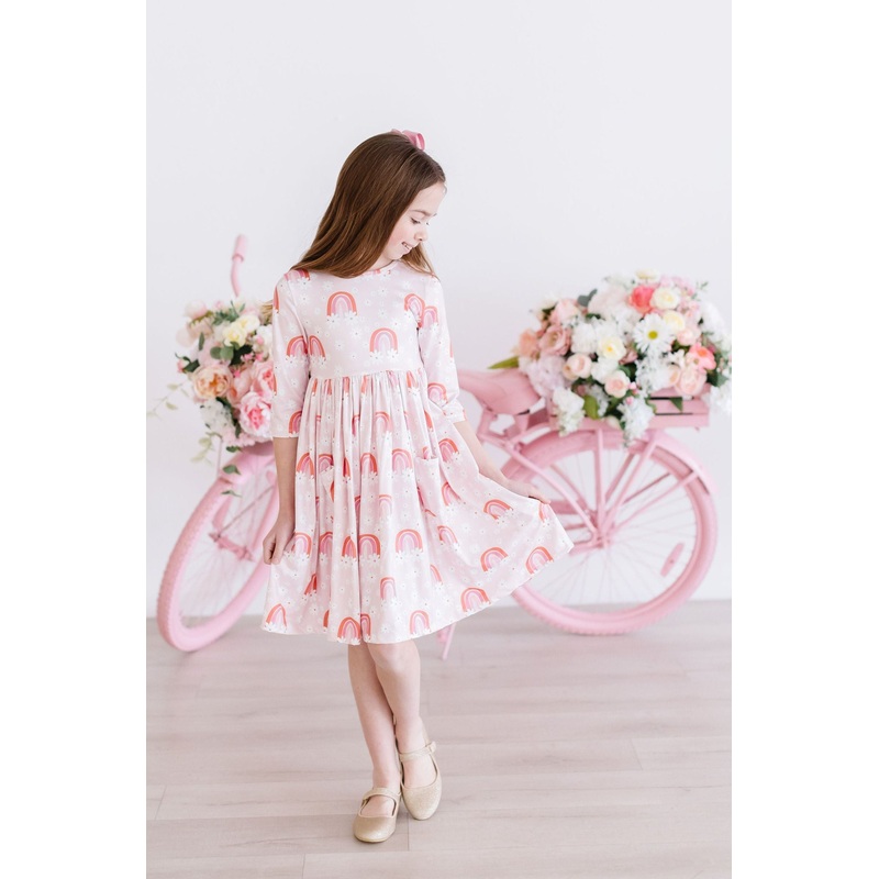 The perfect dress for school, special occasions, and everyday play! Designed by a mom and a dad. Mom wanted something twirly, comfortable and easy to wash. Dad wanted something easy to get on his chubby, big headed toddler. Designed with a scoop back for quick on and off, and higher neckline for modesty. Pair with Twirl Shorts or Leggings for the perfect everyday outfit.