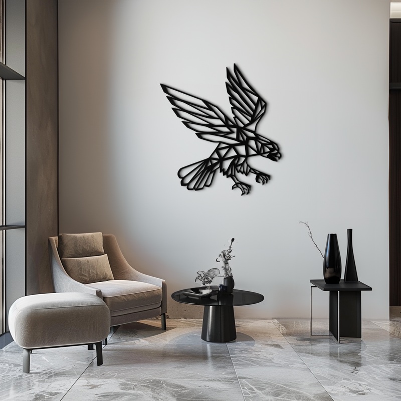 Transform your space with this modern and sophisticated geometric eagle wall art. Order today and let your walls take flight!