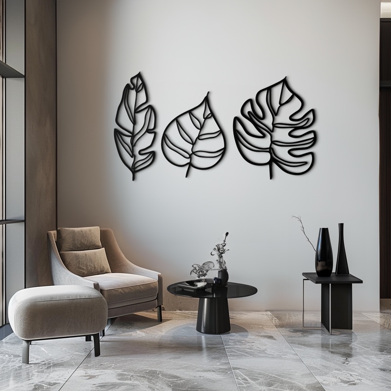 Bring nature indoors with this stunning Geometric Leaf Trio Metal Wall Art. This three-piece set showcases contemporary botanical silhouettes, crafted from 1.5 mm premium steel and coated with a durable electrostatic paint finish to resist rust and fading.