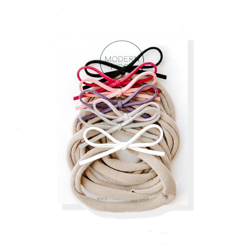 A set ofsevensweet and simplebows made out of a high-quality fauxsuede cordand are the perfect size for those tiny newborns