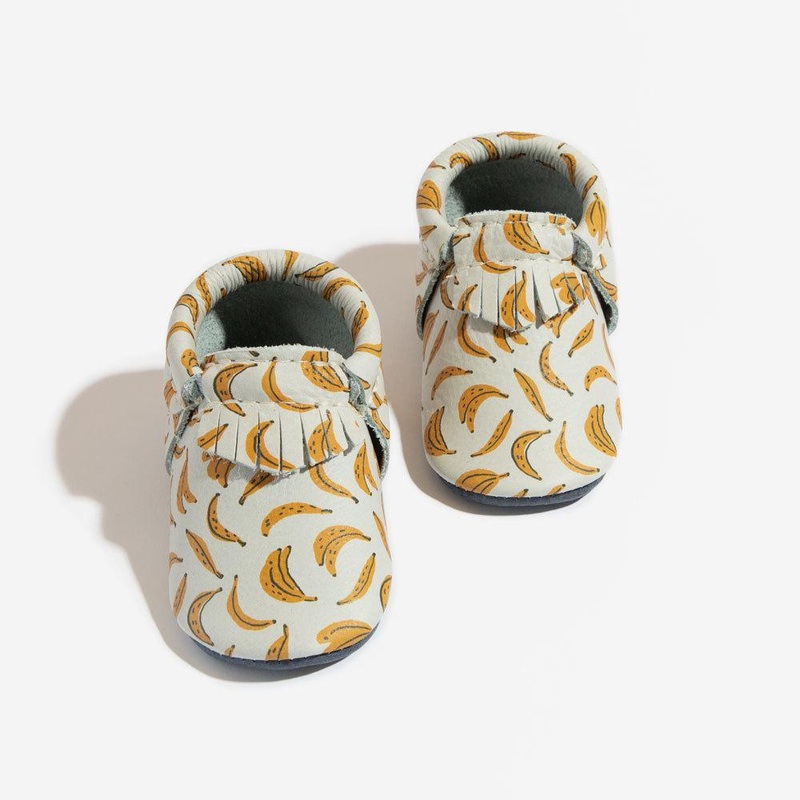 Made by hand from premium leather, these shoes feature a classic Moccasin design with a fringeless collar. With an elasticized ankle for easy wear, they guarantee gentle support and healthy foot development for your little one.