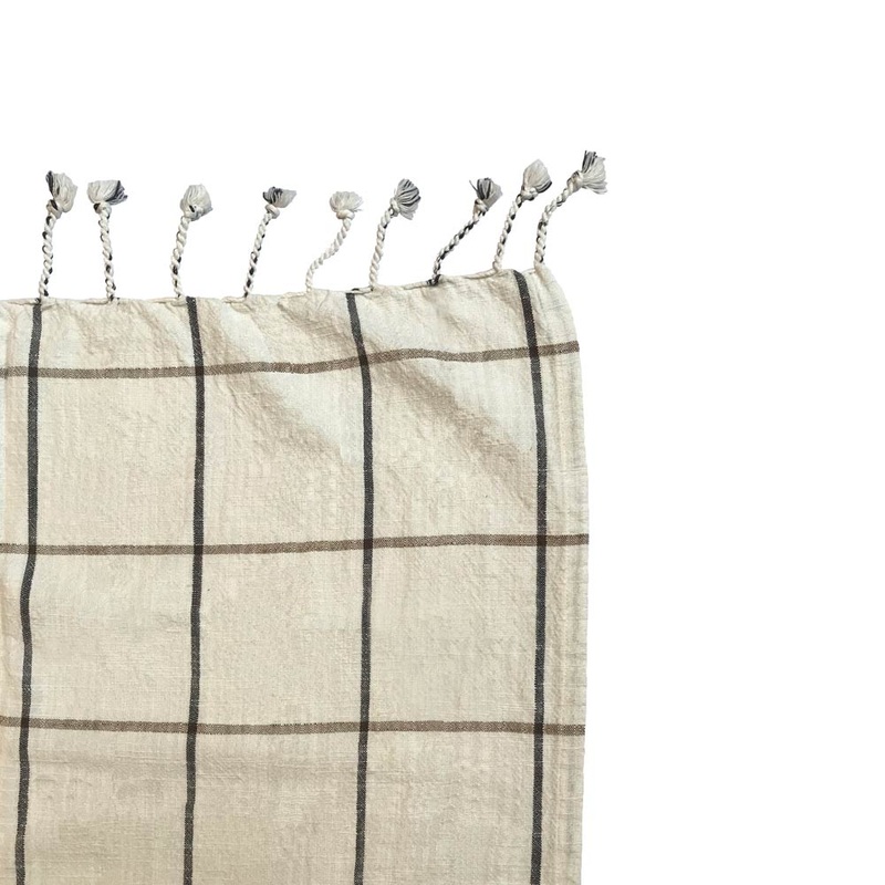 A large bed cover for the double bedroom in a delightful soft woven quality. This rug is light and airy and therefore easy to deal with and lay on the bed. The simple rug in calming colors has fine little details of fringes at the ends.