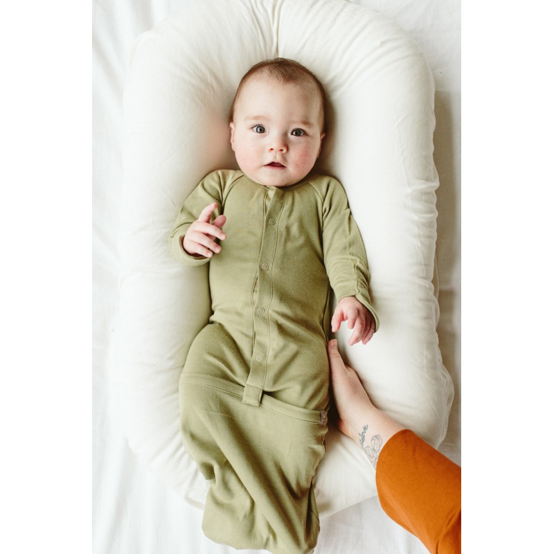 The best cozy sleeper with thoughtful features and super-soft fabric. Featuresour signature integrated mitts with pattern to boost brain development and prevent scratchesplus a one-snap foot pocket to quickly change from gown to sleeper (perfect for those 2am diaper changes).