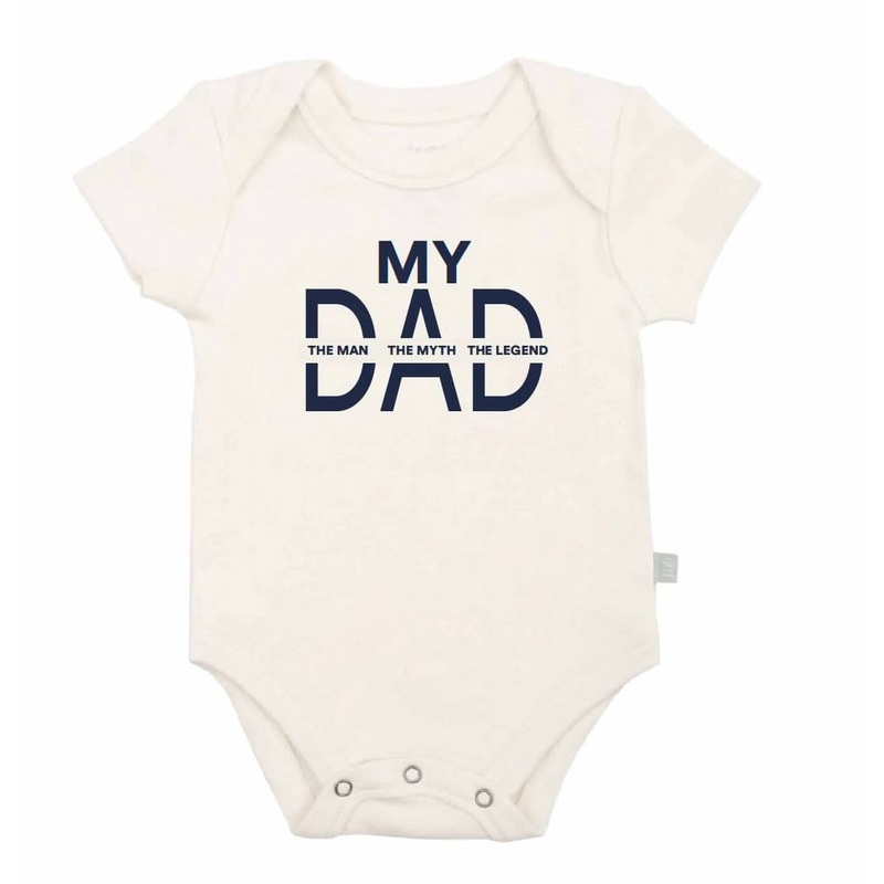 Celebrate dad's legacy with this charming organic baby bodysuit featuring the playful phrase, "Dad - the man, the myth, the legend." Your little one will steal the show in this sweet design that's perfect for any daywhether it's for Father's Day or just to