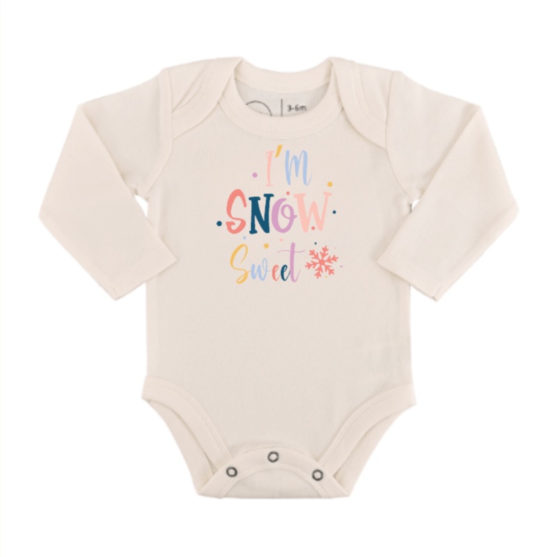 We’ve got the perfect bodysuit for baby’s first winter! Your little snowflakewill be the cutest kid in town in this adorable winteroutfit.It’s great for a visit to grandma’s, a holiday-card photo shoot, all winter long, or a low-key day with friends; in other words, your little one will be comfy and festive all season long (and it makes a great gift too!).Made from buttery-soft organic cotton, our bodysuitsfeature easy-snap fasteners for quick access when changing or bathing.